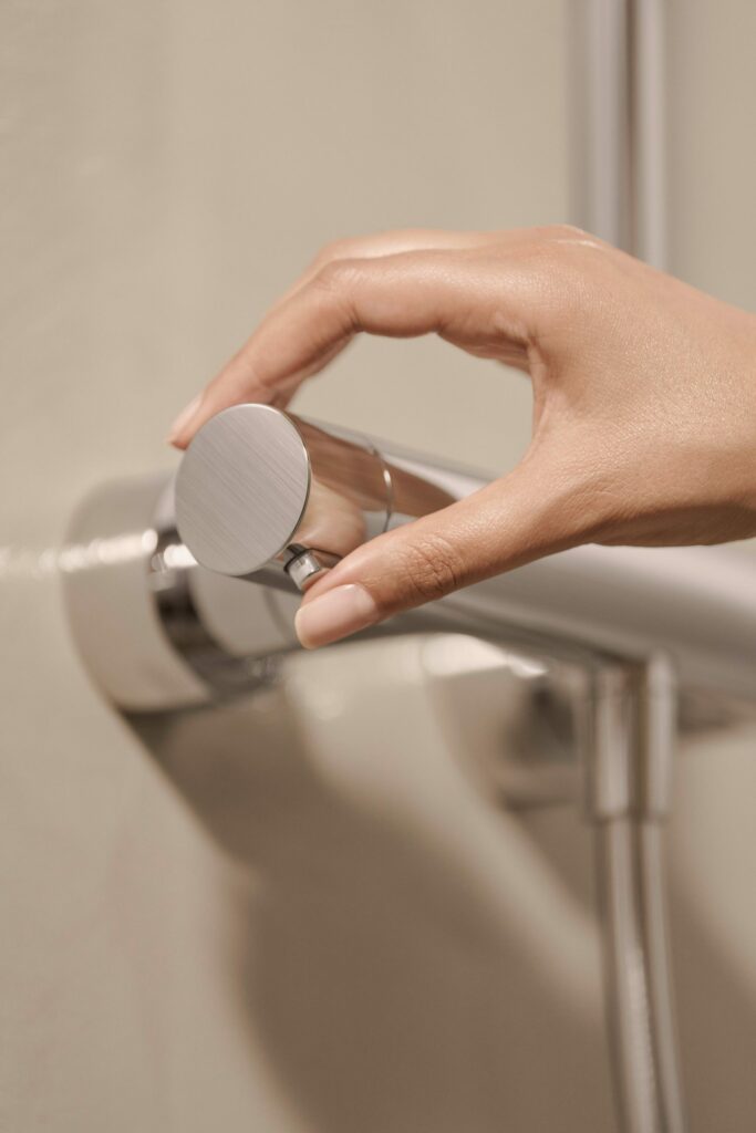 Der neue Thermostat HANSAPRISMA erinnert mit seiner überaus schlanken und formal präzisen, zylindrischen Silhouette an eine Brücke, die sich in ruhigen Gewässern spiegelt und damit einen spannenden Kontrast zwischen dem lebendigen Wasser und seinem festen Ursprung bildet. Sorgfältig gestaltete Griffe ergänzen die Form nahtlos, ohne die Funktionalität zu beeinträchtigen. Die HANSAPRISMA Thermostate liefern jederzeit eine konstante Wassertemperatur und verfügen über ein spezielles THERMO COOL Gehäuse, das angenehm temperiert bleibt. Zusammen mit der 38°C Sicherheitssperre sind Verbrühungen oder Verbrennungen selbst bei Druckschwankungen ausgeschlossen. Zudem sind sie besonders effizient und reduzieren den Wasser- und Energieverbrauch.