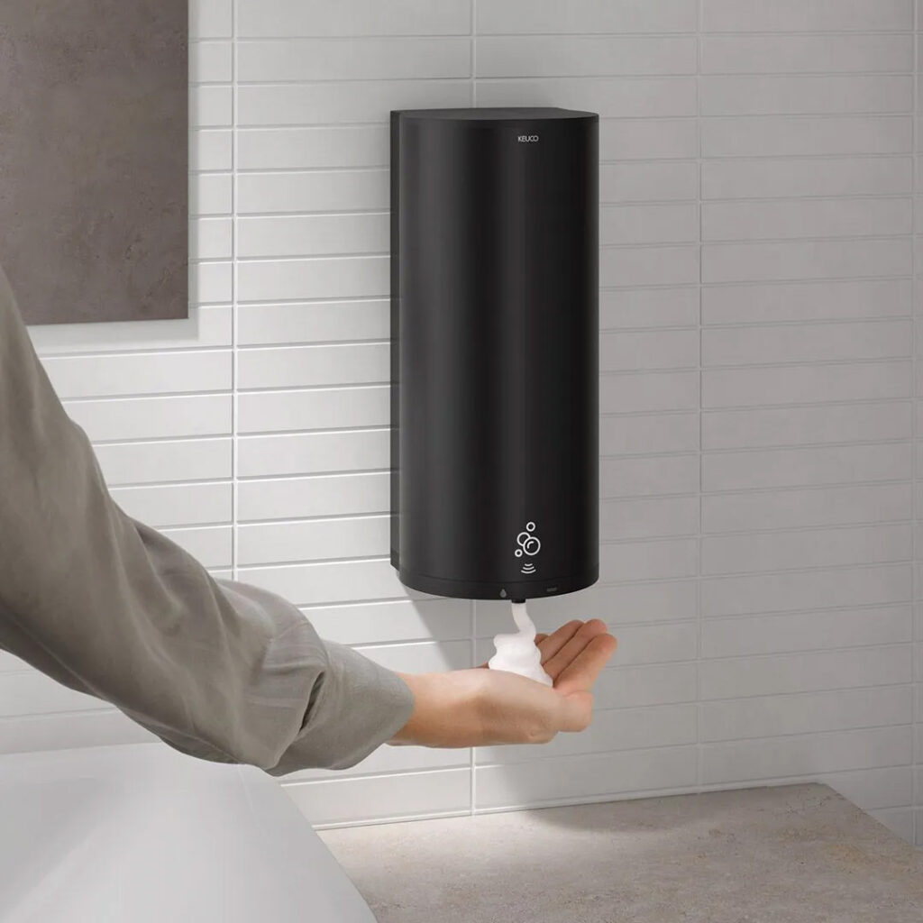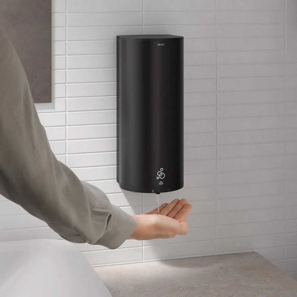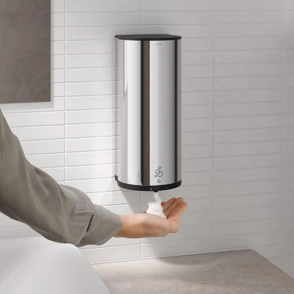 Accessoires für die tägliche Hygiene hat KEUCO viele im Sortiment. Die Revolution: Es wurde je ein Sensorspender für Flüssig- oder Schaumseife sowie flüssiges Desinfektionsmittel entwickelt, der gleichermaßen mit Ästhetik und innovativer Technik begeistert. Alle Spender haben das gleiche, universelle Design und bieten viele technische Details.